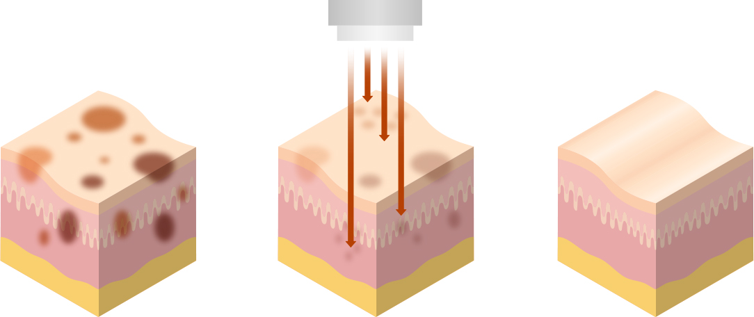 표피와 진피층에 혼합된 형태의 색소를 잡아내는 것이 중요합니다.